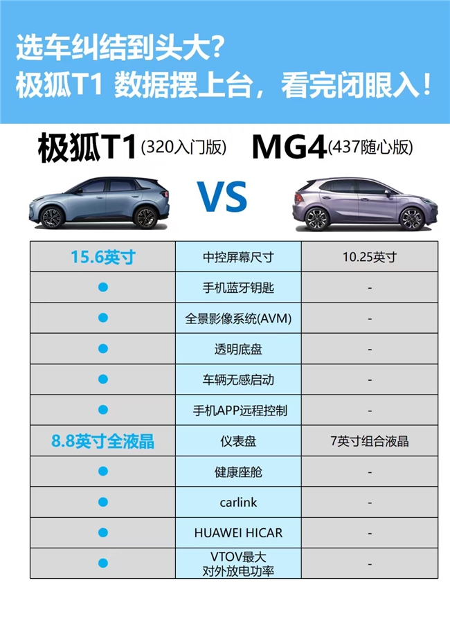 通过对比分析可以看出,极狐T1无论是在设计细节还是整体性能上都要优于名爵MG4。因此,对于追求极致品质生活的您来说,选择极狐T1绝对不会让您失望。